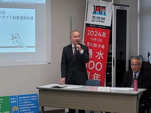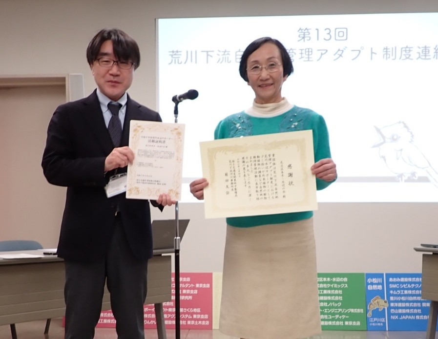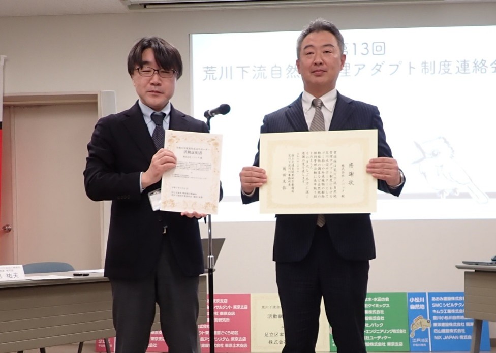 関東地方に降雪があったことから、除雪対応のため急遽欠席となった水辺サポーター団体様も複数おりましたが、本年度も「荒川下流自然地管理アダプト制度連絡会議」を開催し、令和7年度に活動いただく水辺サポーターの皆さまとの「合意書の取り交わし」や「意見交換」の他、活動継続10年を迎えた団体様への感謝状贈呈を行いました。